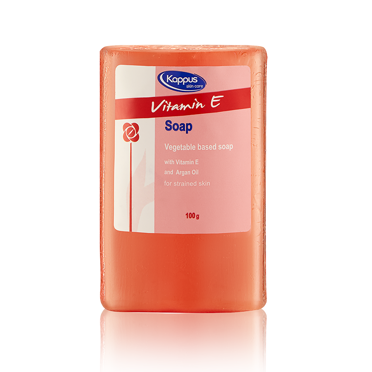 پایه اصلی صابون ویتامین E، روغن_آرگان و گلیسیرین می باشد که همراه با ویتامین E پوست را در مقابل اثرات مخرب زیست محیطی